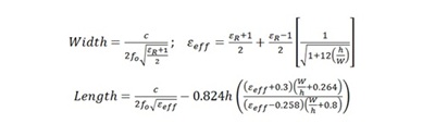 - Larghezza: W = (c / (2 × f₀)) × √(2 / (εr + 1))