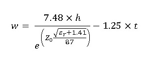 W = (7.48 × h) / exp(Z₀ × √(εr + 1.41) / 87) − 1.25 × t