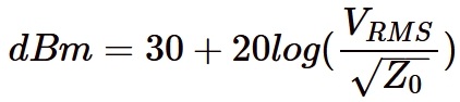 dBm = 20 × log10(Vrms) + 30 − 10 × log10(R)