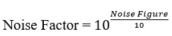 Il Noise Figure (NF) rappresenta quanto rumore aggiunge un dispositivo rispetto a un sistema ideale. Il Noise Factor (F) è la versione lineare dello stesso parametro, utile per calcoli in catene di amplificazione e simulazioni. La conversione avviene elevando 10 alla potenza del valore NF diviso 10, trasformando così il valore in scala logaritmica in scala lineare.